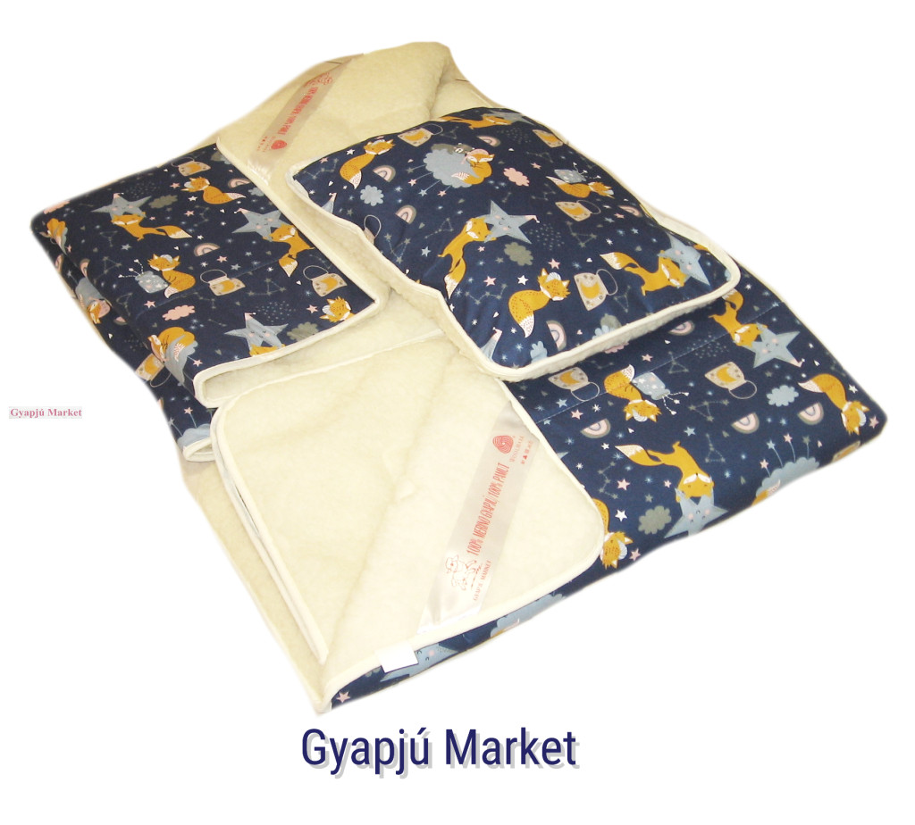 3 részes bárány merino gyapjú / pamut KIS RÓKÁS gyermek garnitúra (takaró derékalj párna)