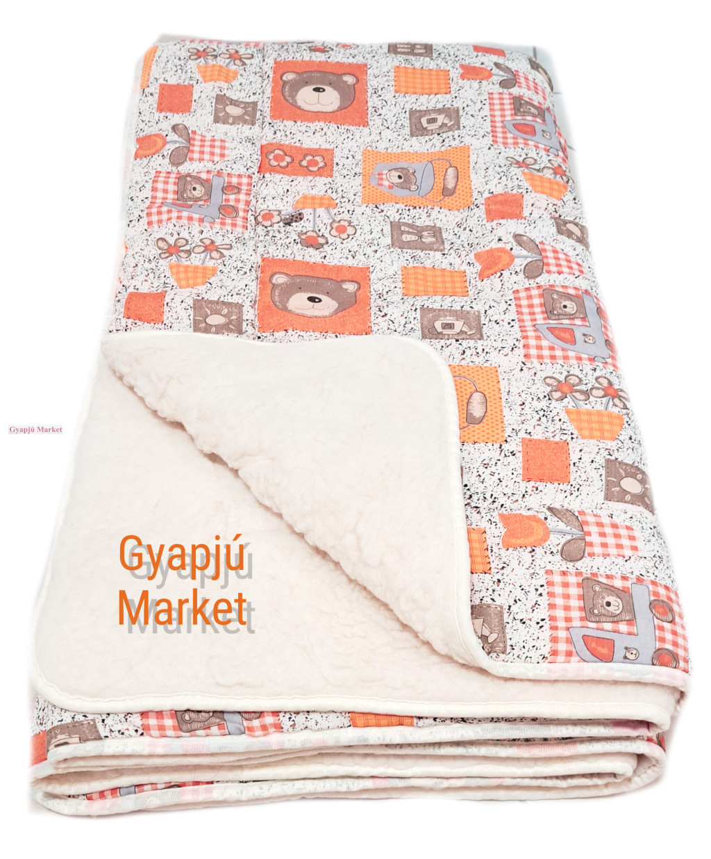 Bárány merinó gyapjú-pamut takaró macis, virágos mintával 190x200 cm