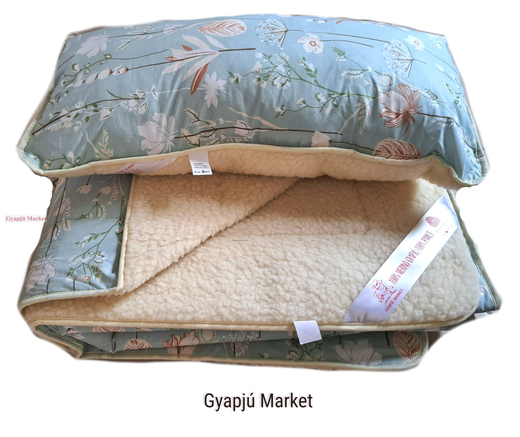 Merino bárány gyapjú / pamut szett (takaró, párna) gyapotvirágos
